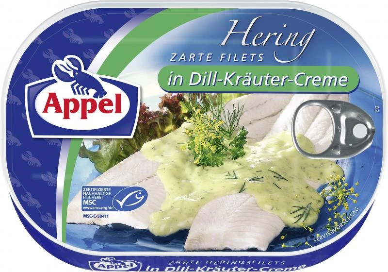 Seit 1879 steht der Name Appel für Fisch und Feinkost von höchster Qualität. Nur die besten Zutaten werden schonend zu köstlichen Fischprodukten in raffinierten Saucen verarbeitet. So entstehen Créationen wie Appel zarte Heringsfilets in einer würzigen Kräuter-Creme mit aromatischen Dillspitzen verfeinert: ein unvergleichlicher Genuss!